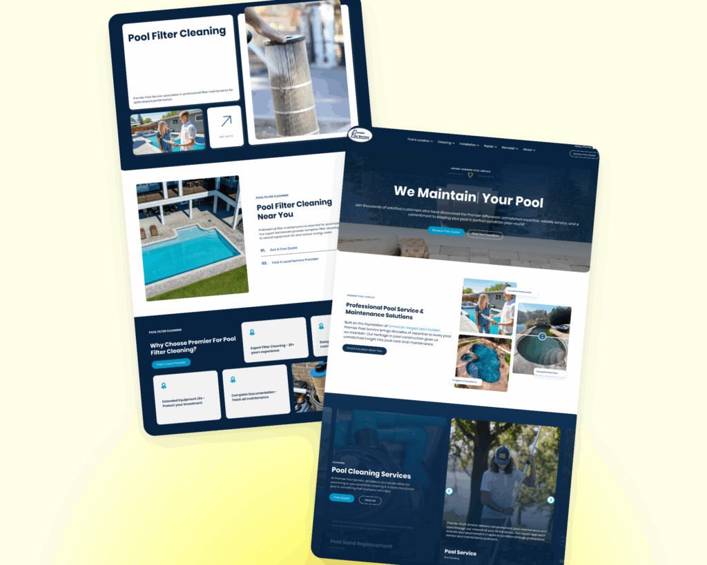 I led a website redesign for Premier Pool Service, a leading pool maintenance franchise with over 30 locations nationwide. The previous website suffered from fundamental UX issues, lack of clear content strategy, disorganized URL structure, and location pages that consisted of nothing more than blocks of text.
