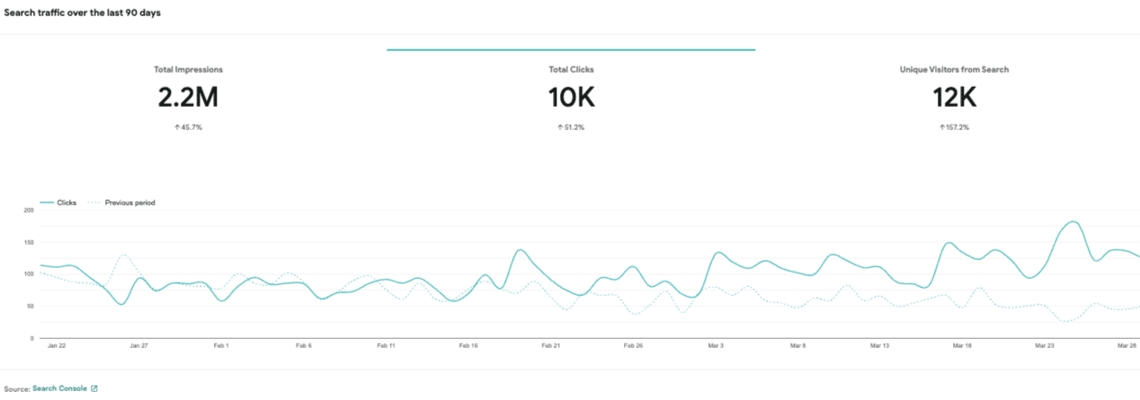 - Increased total clicks to 10K (51.2% growth) with better conversion